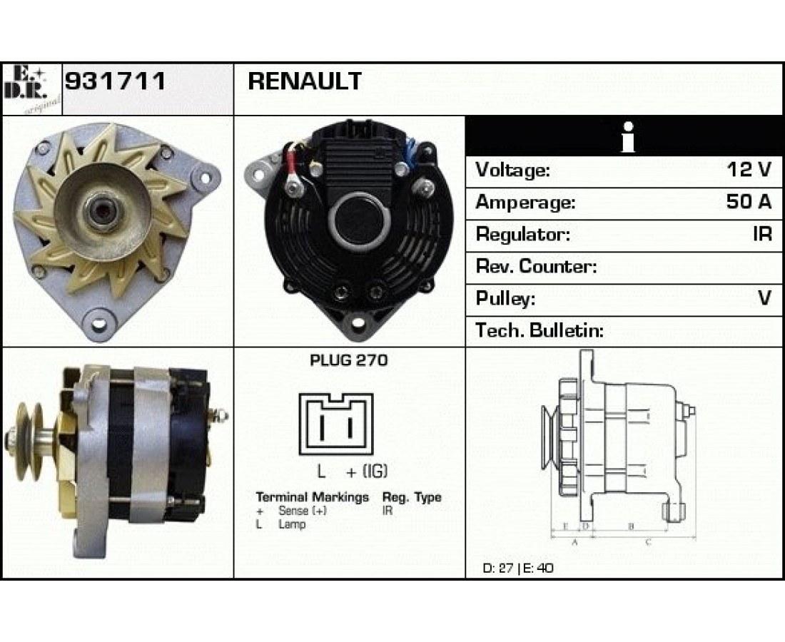 Γεννήτρια RENAULT 5 - 9 - 11 1972 - 1985 EDR 7701499214 της εταιρείας EDR