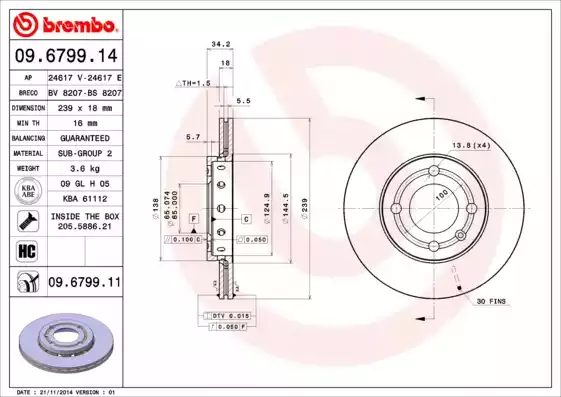 Ο επίσημος κωδικός κατασκευαστή για το συγκεκριμένο ανταλλακτικό αυτοκινήτου είναι: 09.6799.14