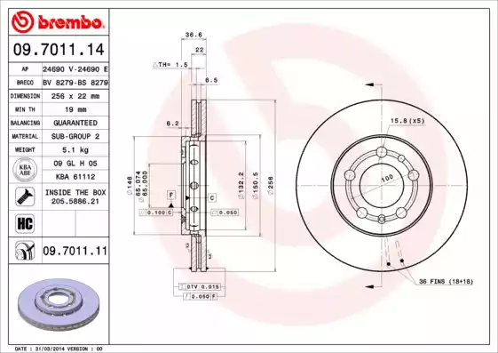 Ο επίσημος κωδικός κατασκευαστή για το συγκεκριμένο ανταλλακτικό αυτοκινήτου είναι: 09.7011.14