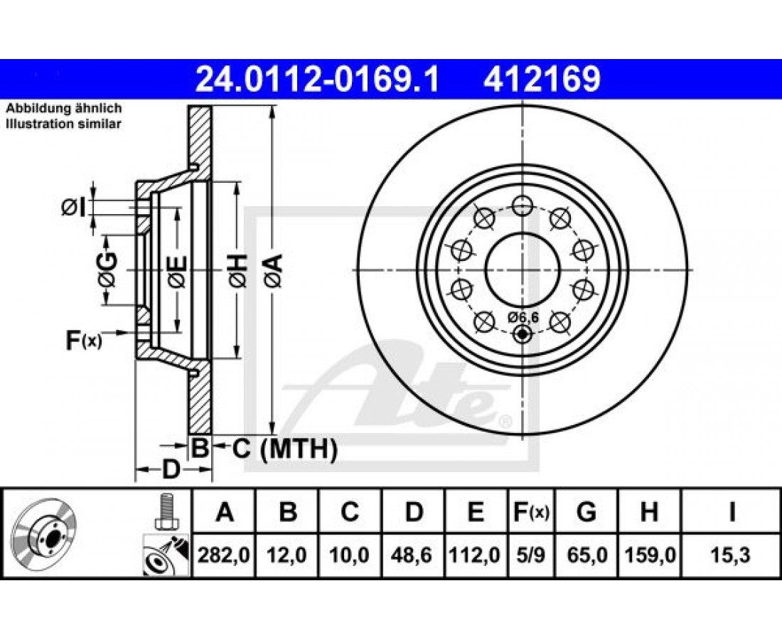 Δισκόπλακες VW GOLF 2004 - 2008 ( Mk5 ) ATE 24.0112-0169.1