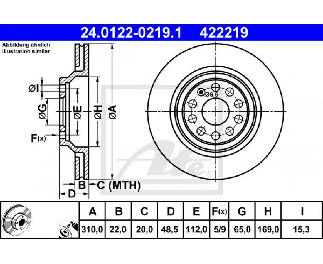 Δισκόπλακες VW GOLF 2004 - 2008 ( Mk5 ) ATE 24.0122-0219.1