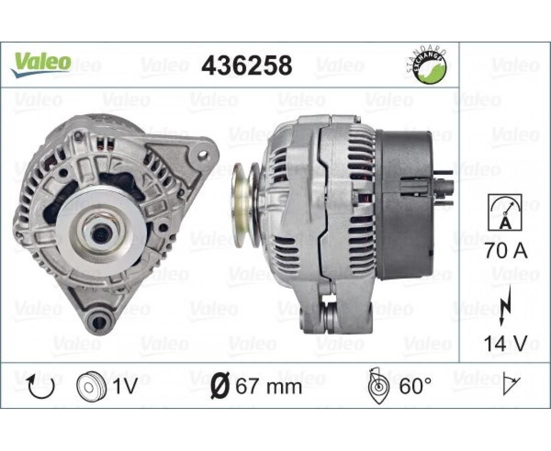 Δυναμό/Εναλλάκτης PEUGEOT 106 1992 - 1995 VALEO 436258 της εταιρείας VALEOAftermarket ανταλλακτικό πάντα με την εγγύηση της εταιρείας XCAR όπως αυτή περιγράφεται στην αντίστοιχη ενότητα. Η κατάσταση του συγκεκριμένου ανταλλακτικού είναι Καινούριο.