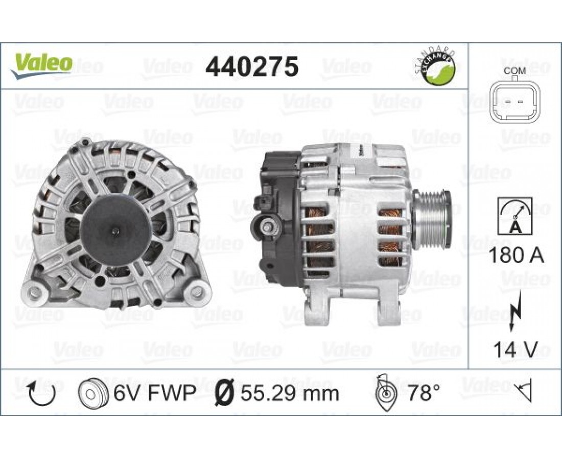 Δυναμό/Εναλλάκτης PEUGEOT 308 2008 - 2012 VALEO 440275 της εταιρείας VALEOAftermarket ανταλλακτικό πάντα με την εγγύηση της εταιρείας XCAR όπως αυτή περιγράφεται στην αντίστοιχη ενότητα. Η κατάσταση του συγκεκριμένου ανταλλακτικού είναι Καινούριο.