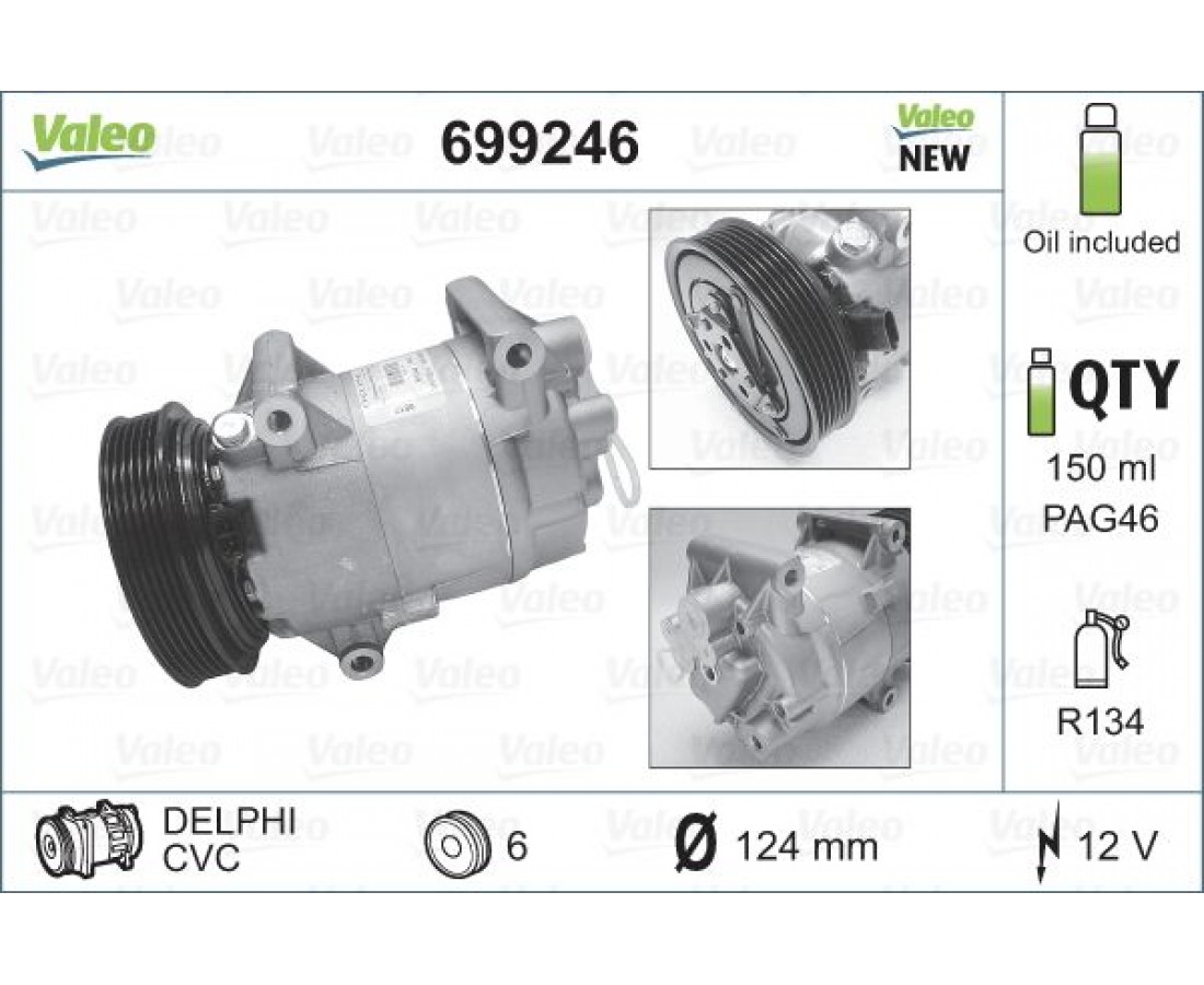 Συμπιεστής A/C (Κομπρέσορας) NISSAN ALMERA 2000 - 2002 ( N16 ) VALEO 699246 της εταιρείας VALEOAftermarket ανταλλακτικό πάντα με την εγγύηση της εταιρείας XCAR όπως αυτή περιγράφεται στην αντίστοιχη ενότητα. Η κατάσταση του συγκεκριμένου ανταλλακτικού είναι Καινούριο.