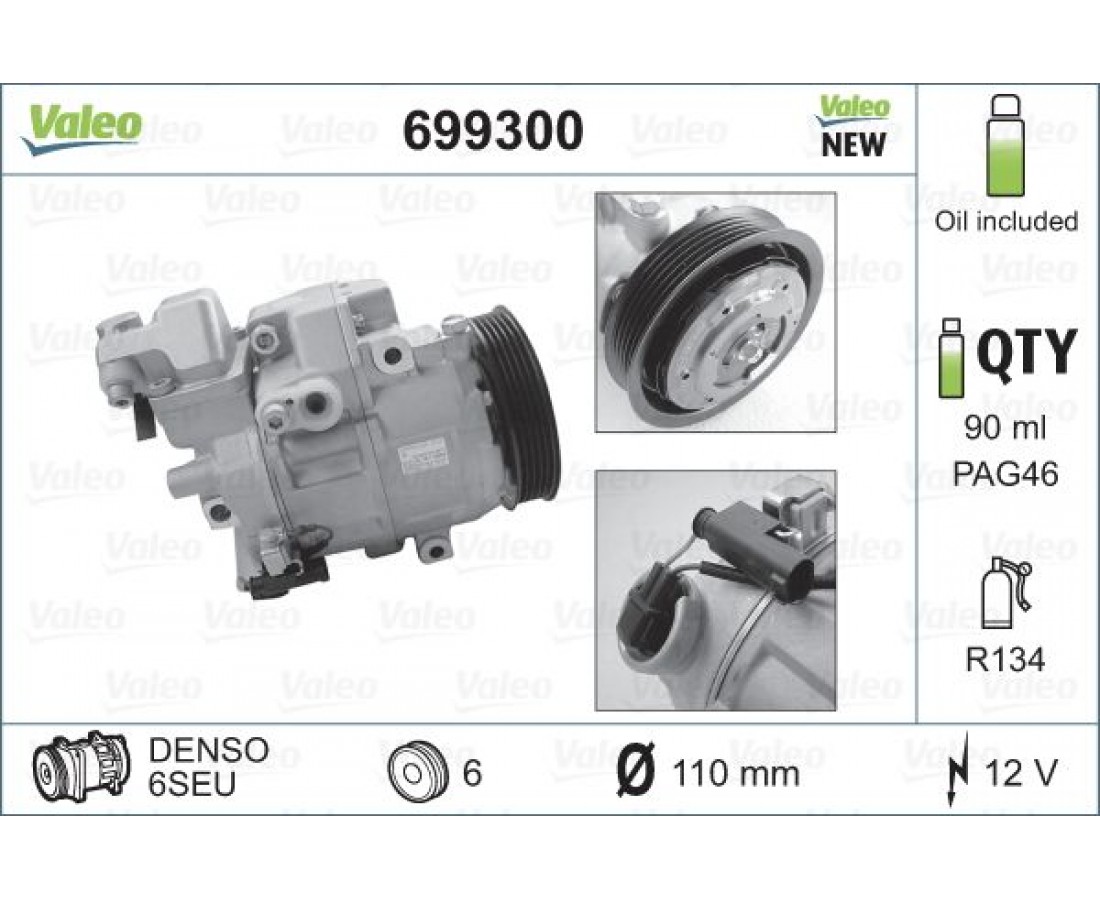 Συμπιεστής A/C (Κομπρέσορας) MERCEDES A CLASS 2001 - 2004 ( W168 ) VALEO 699300 της εταιρείας VALEOAftermarket ανταλλακτικό πάντα με την εγγύηση της εταιρείας XCAR όπως αυτή περιγράφεται στην αντίστοιχη ενότητα. Η κατάσταση του συγκεκριμένου ανταλλακτικού είναι Καινούριο.