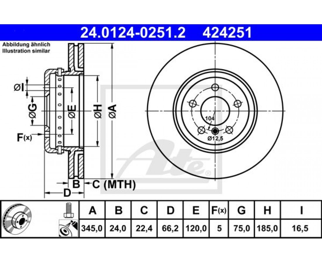 Δισκόπλακες BMW 3 Series 2012 - 2014 ( F30/31/34 ) ATE 24.0124-0251.2