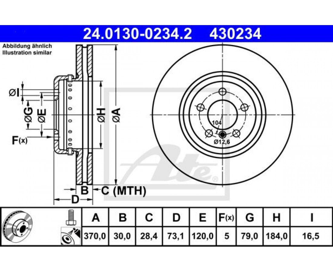 Δισκόπλακες BMW 3 Series 2012 - 2014 ( F30/31/34 ) ATE 24.0130-0234.2