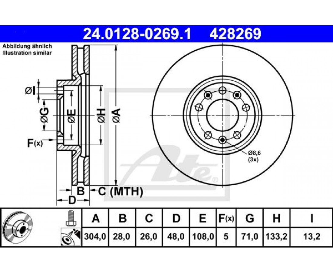 Δισκόπλακες PEUGEOT 407 2004 - 2008 ( 6D_ ) ATE 24.0128-0269.1 της εταιρείας ATEAftermarket ανταλλακτικό πάντα με την εγγύηση της εταιρείας XCAR όπως αυτή περιγράφεται στην αντίστοιχη ενότητα. Η κατάσταση του συγκεκριμένου ανταλλακτικού είναι Καινούριο.