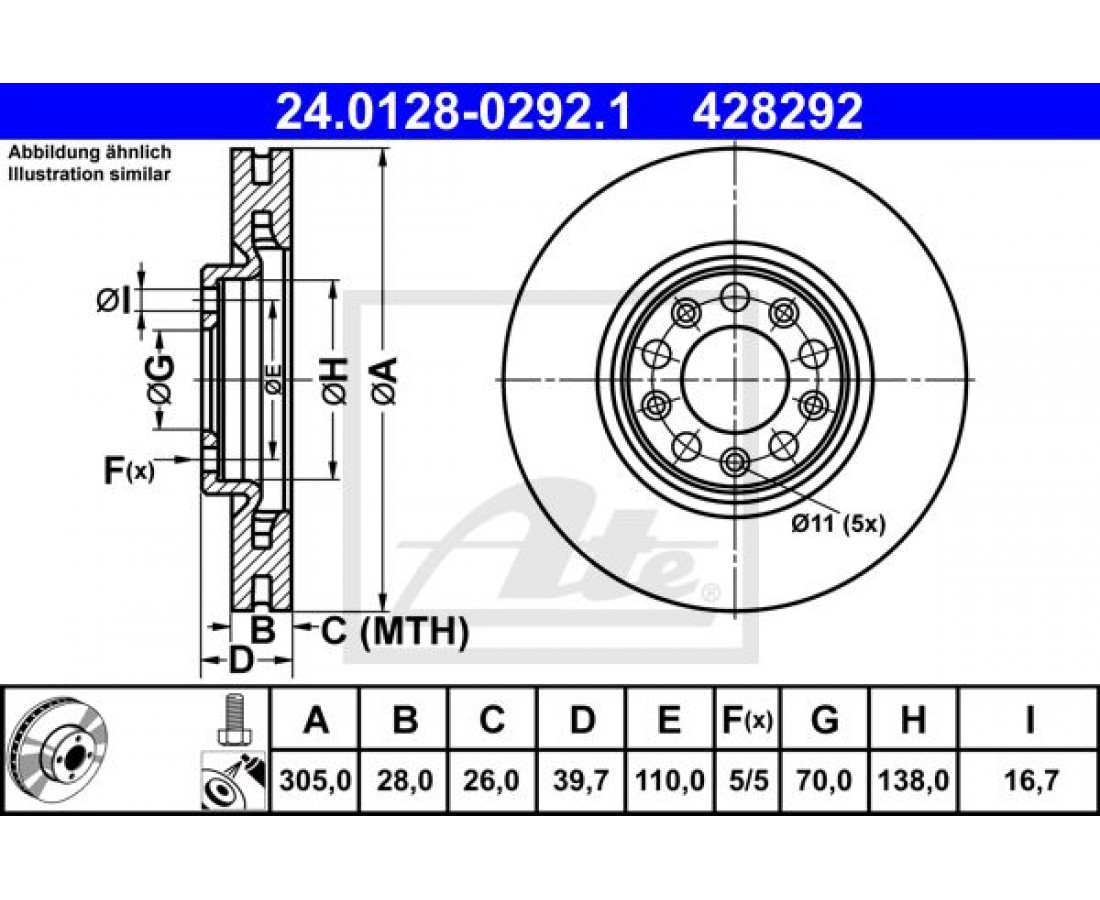 Εγγύηση για το προϊόν Δισκόπλακες JEEP RENEGADE 2014 - 2018 ATE 24.0128-0292.1