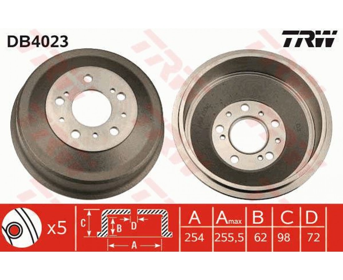 Ταμπούρο TRW DB4023 της εταιρείας TRWAftermarket ανταλλακτικό πάντα με την εγγύηση της εταιρείας XCAR όπως αυτή περιγράφεται στην αντίστοιχη ενότητα. Η κατάσταση του συγκεκριμένου ανταλλακτικού είναι Καινούριο.