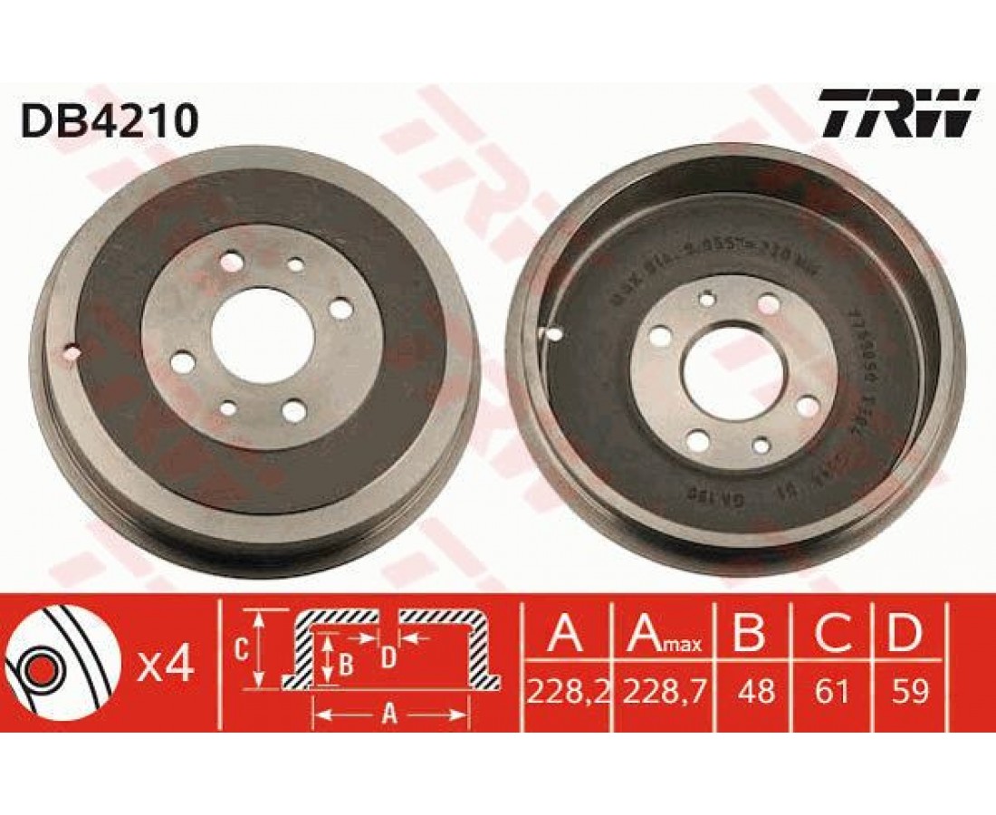 Ταμπούρο FIAT UNO 1983 - 1989 ( 146 ) TRW DB4210 της εταιρείας TRWAftermarket ανταλλακτικό πάντα με την εγγύηση της εταιρείας XCAR όπως αυτή περιγράφεται στην αντίστοιχη ενότητα. Η κατάσταση του συγκεκριμένου ανταλλακτικού είναι Καινούριο.