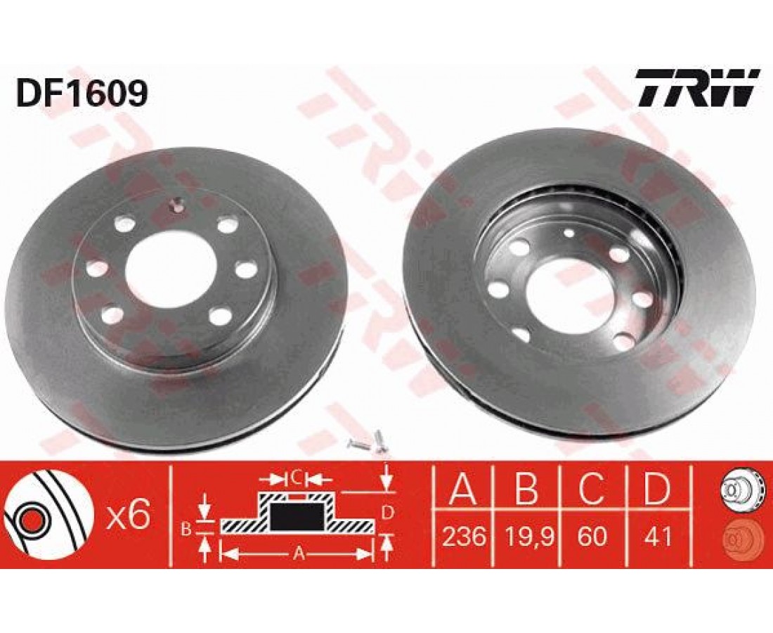 Δισκόπλακες OPEL KADETT 1984 - 1994 ( E ) TRW DF1609 της εταιρείας TRWAftermarket ανταλλακτικό πάντα με την εγγύηση της εταιρείας XCAR όπως αυτή περιγράφεται στην αντίστοιχη ενότητα. Η κατάσταση του συγκεκριμένου ανταλλακτικού είναι Καινούριο.