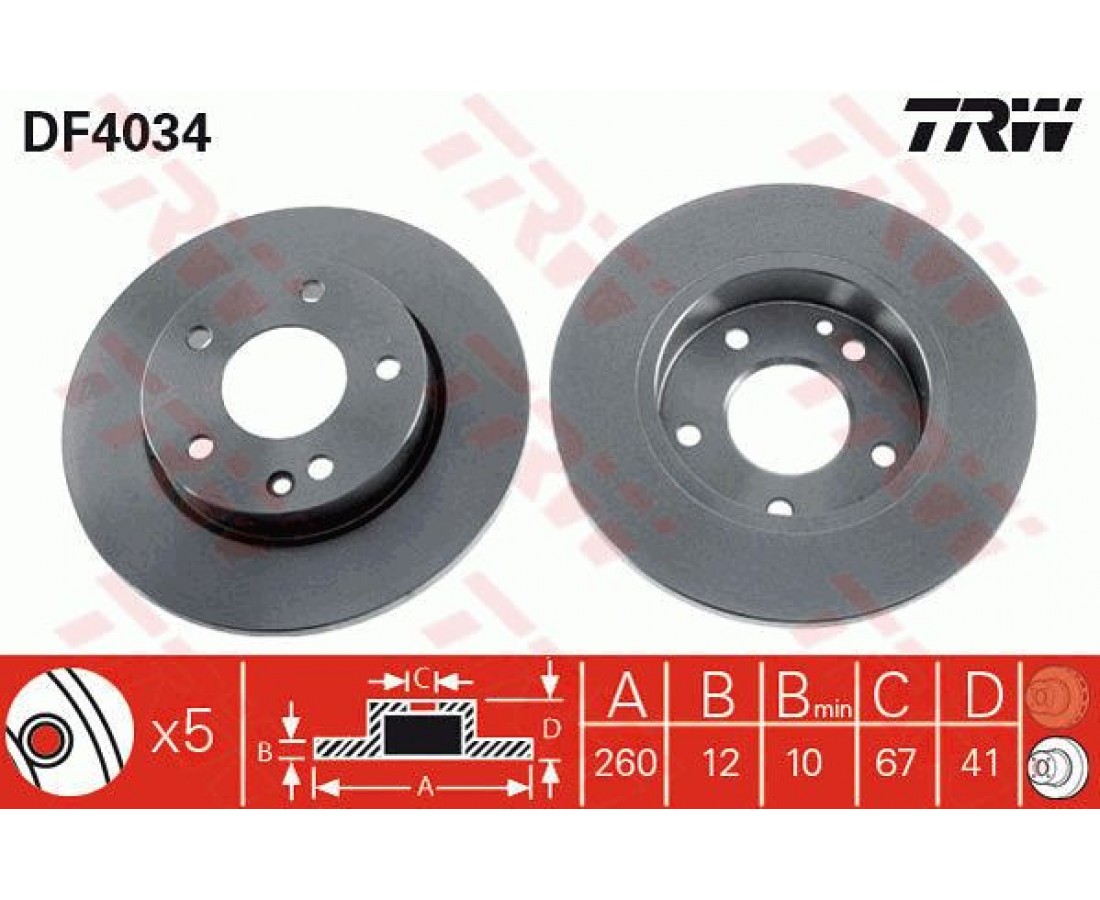Δισκόπλακες MERCEDES A CLASS 2001 - 2004 ( W168 ) TRW DF4034