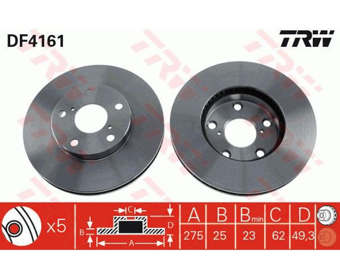 Δισκόπλακες TOYOTA RAV-4 2000 - 2003 ( XA20 ) TRW DF4161 της εταιρείας TRWAftermarket ανταλλακτικό πάντα με την εγγύηση της εταιρείας XCAR όπως αυτή περιγράφεται στην αντίστοιχη ενότητα. Η κατάσταση του συγκεκριμένου ανταλλακτικού είναι Καινούριο.