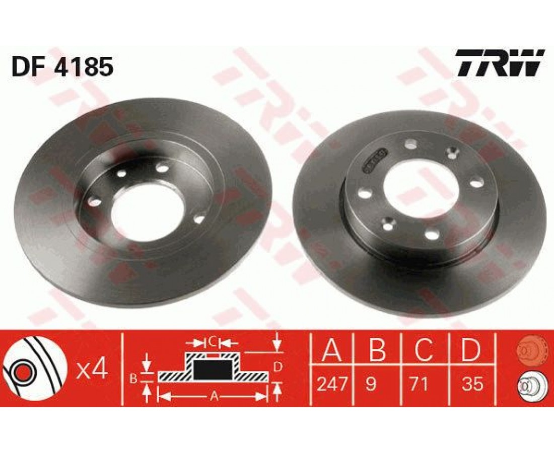 Δισκόπλακες PEUGEOT 307 2001 - 2005 ( 3A ) ( 3C ) TRW DF4185