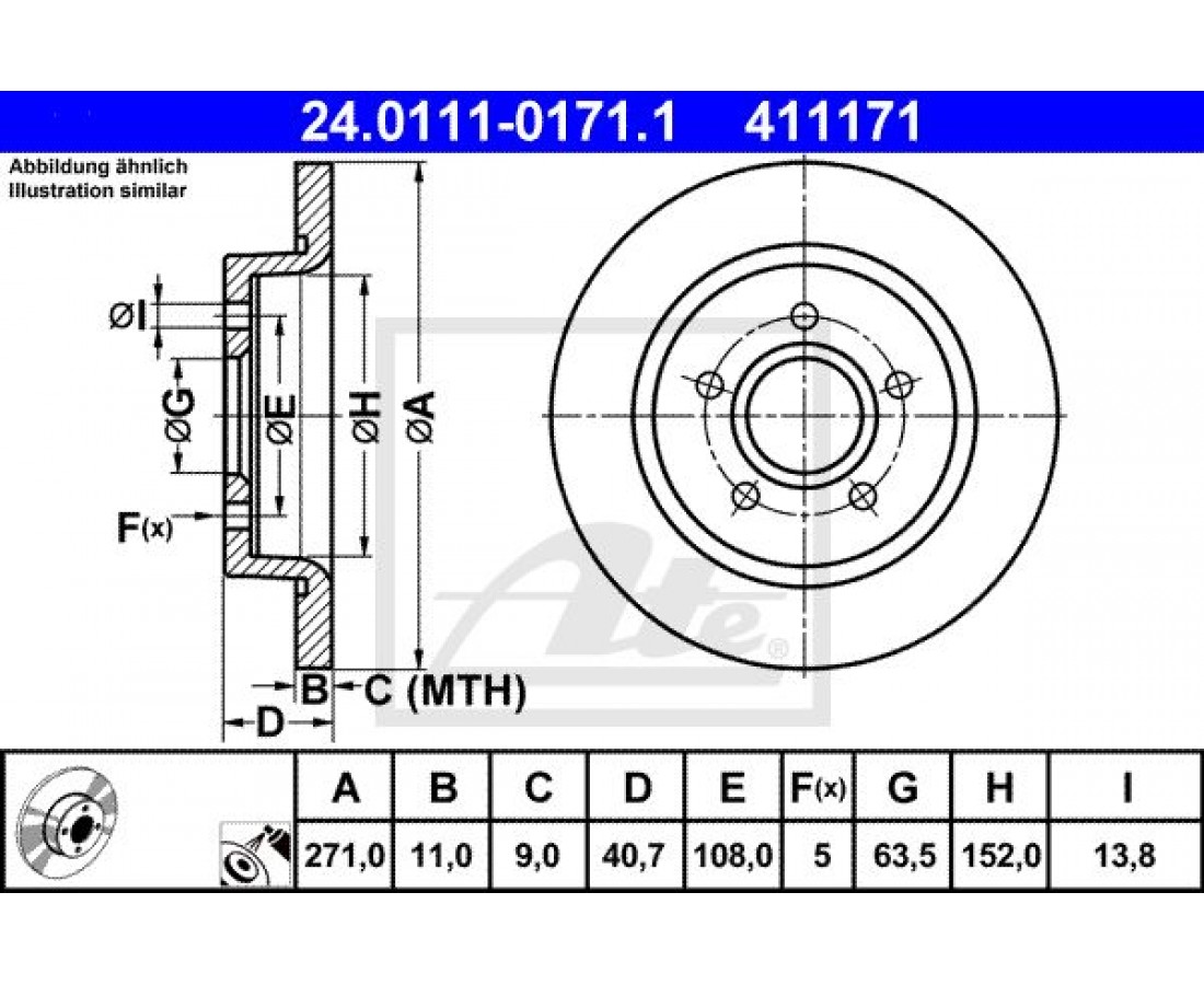 Δισκόπλακες FORD FOCUS 2011 - 2014 ATE 24.0111-0171.1