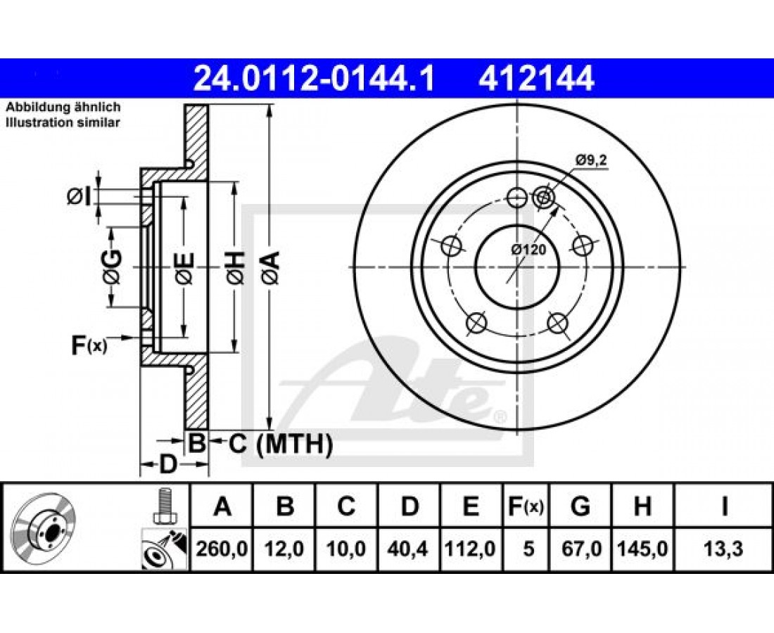 Δισκόπλακες MERCEDES A CLASS 2001 - 2004 ( W168 ) ATE 24.0112-0144.1