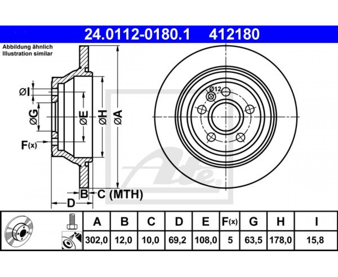 Δισκόπλακες VOLVO S80 2010 - 2014 ATE 24.0112-0180.1