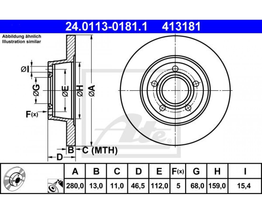 Δισκόπλακες AUDI A4 1995 - 1998 ( 8D ) ATE 24.0113-0181.1