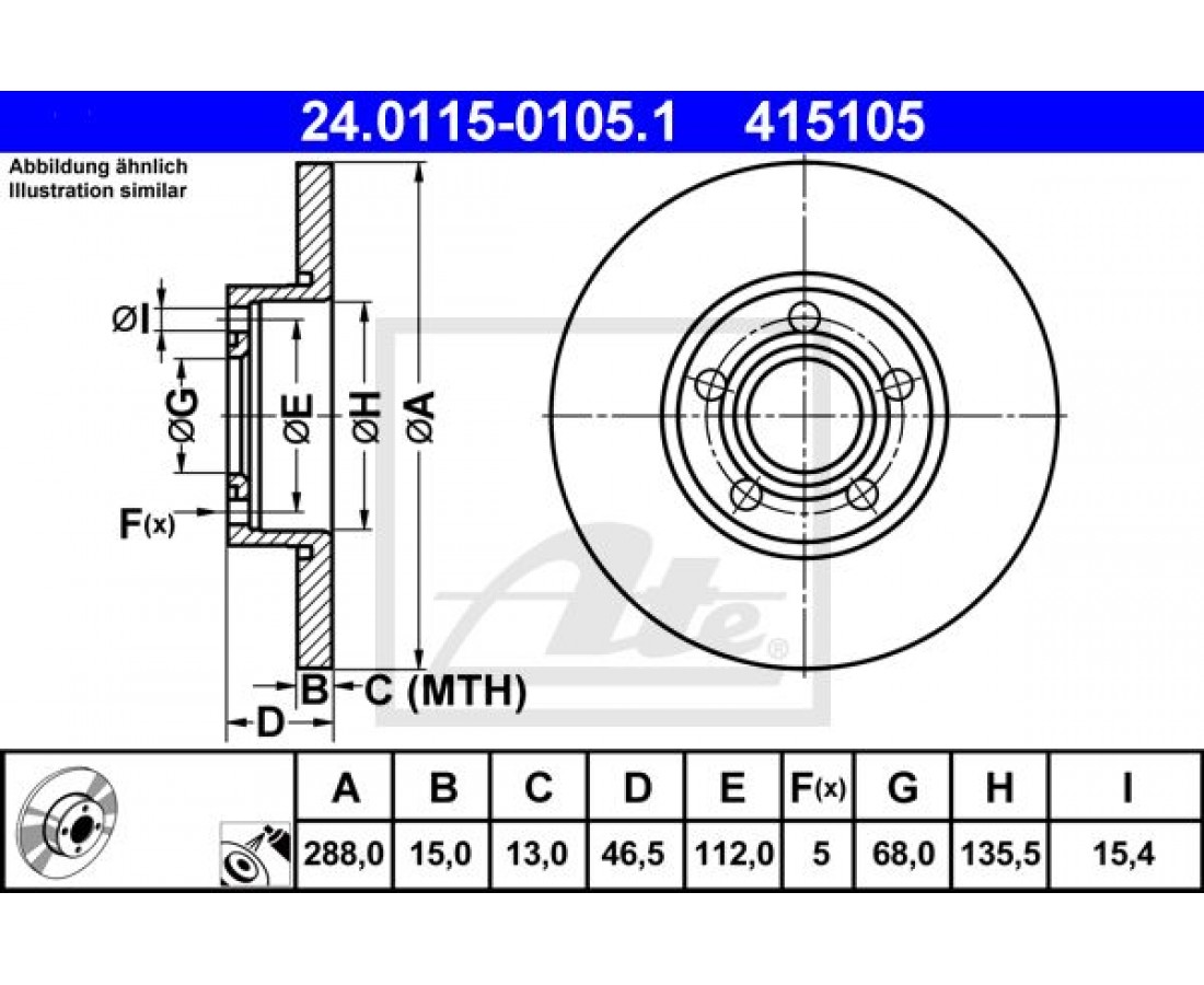 Δισκόπλακες AUDI 100 1991 - 1995 ( 4A ) ( C4 ) ATE 24.0115-0105.1