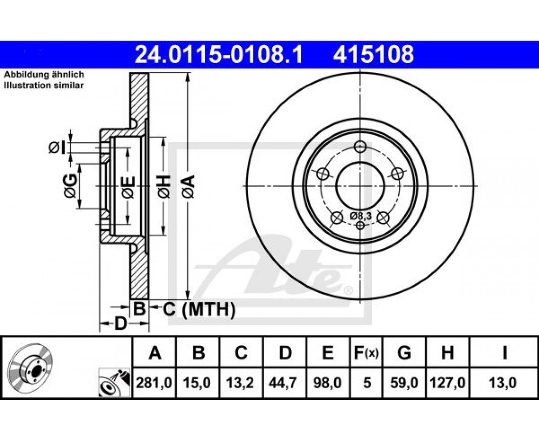 Δισκόπλακες ALFA ROMEO 147 2000 - 2004 ( 937 ) ATE 24.0115-0108.1