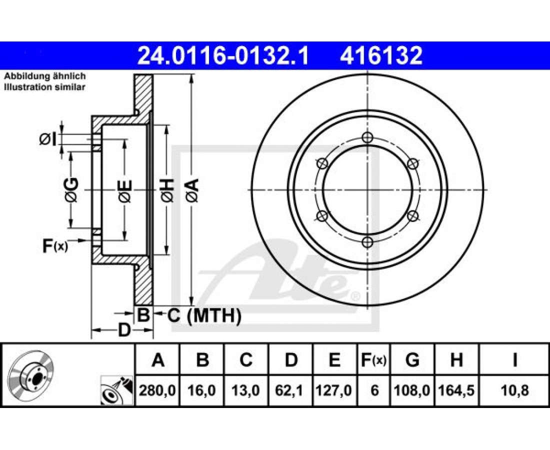 Δισκόπλακες NISSAN CABSTAR 2008 - 2017 ATE 24.0116-0132.1