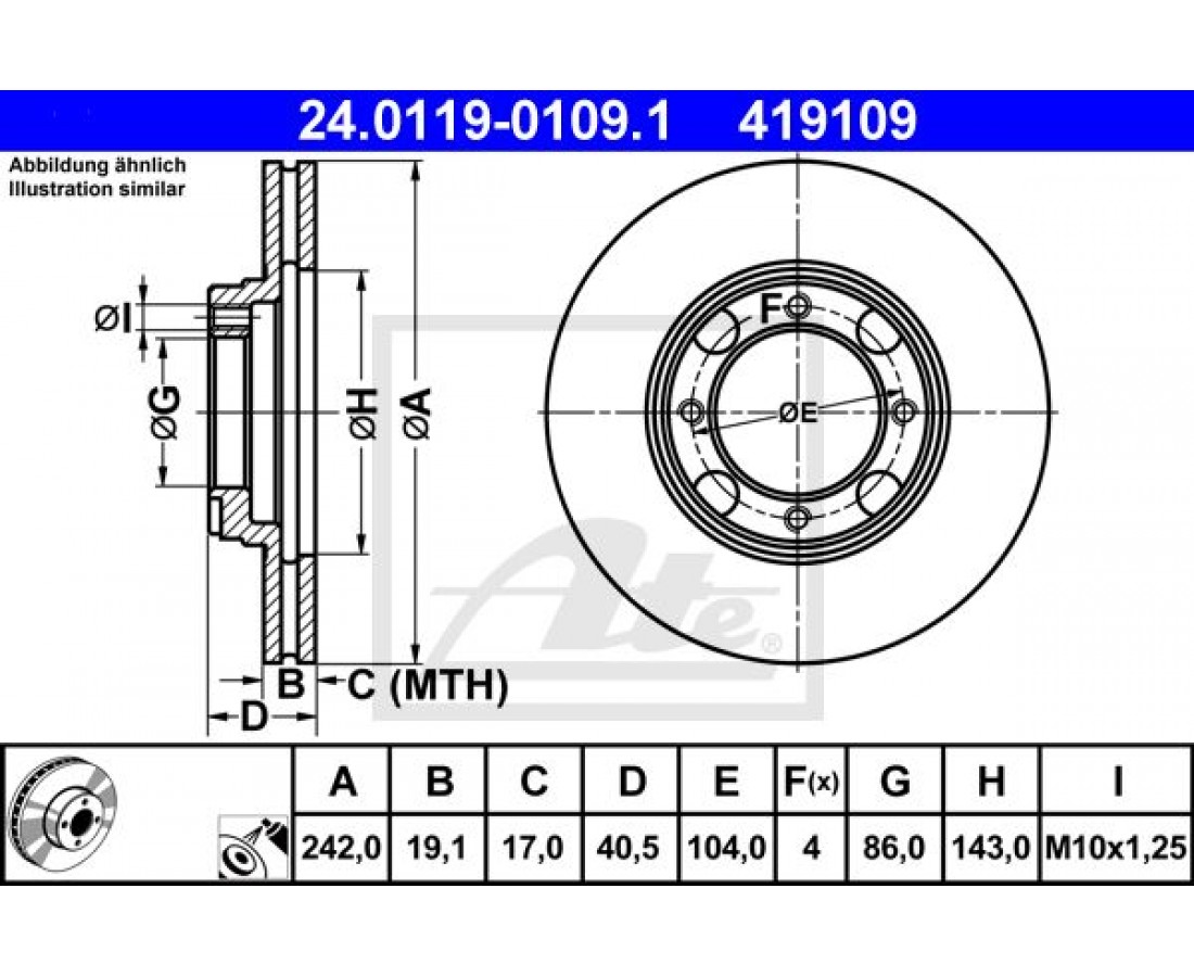 | Πάχος δισκόπλακας [mm] | 19,1 |