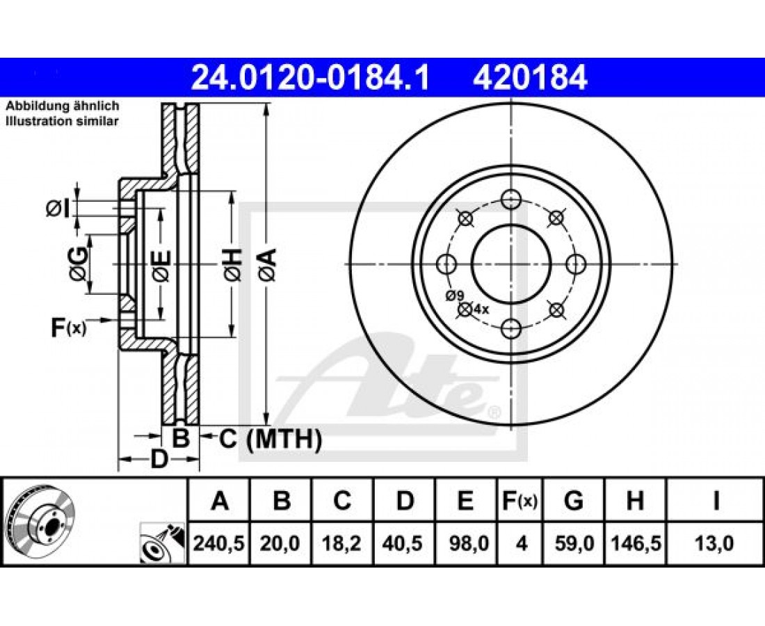 Δισκόπλακες FORD KA 2008 - 2016 ( RU8 ) ATE 24.0120-0184.1