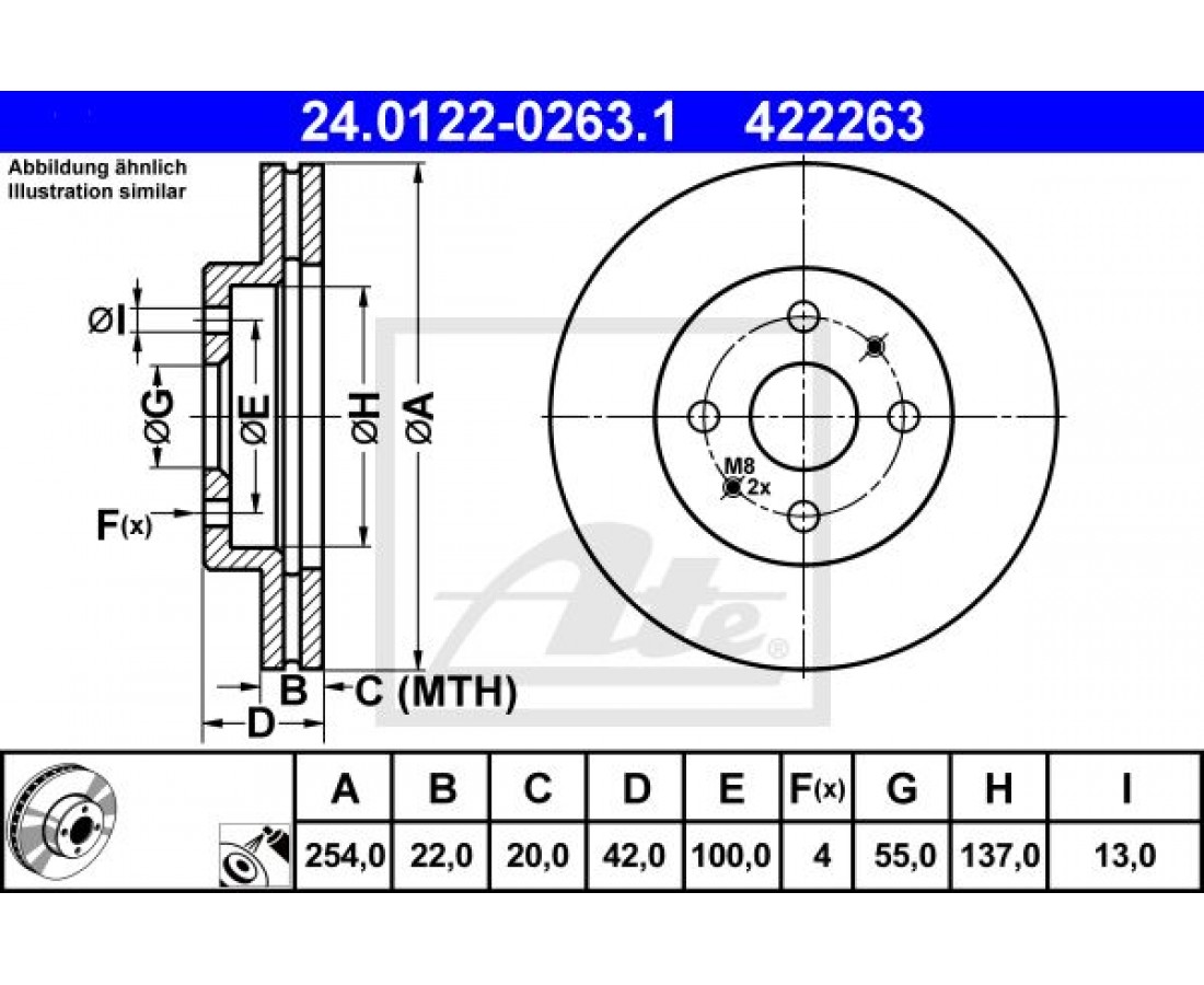 Δισκόπλακες SUBARU JUSTY 2007 - ATE 24.0122-0263.1