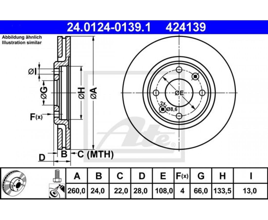 Δισκόπλακες PEUGEOT 406 1996 - 1999 ( 8B ) ATE 24.0124-0139.1 της εταιρείας ATEAftermarket ανταλλακτικό πάντα με την εγγύηση της εταιρείας XCAR όπως αυτή περιγράφεται στην αντίστοιχη ενότητα. Η κατάσταση του συγκεκριμένου ανταλλακτικού είναι Καινούριο.
