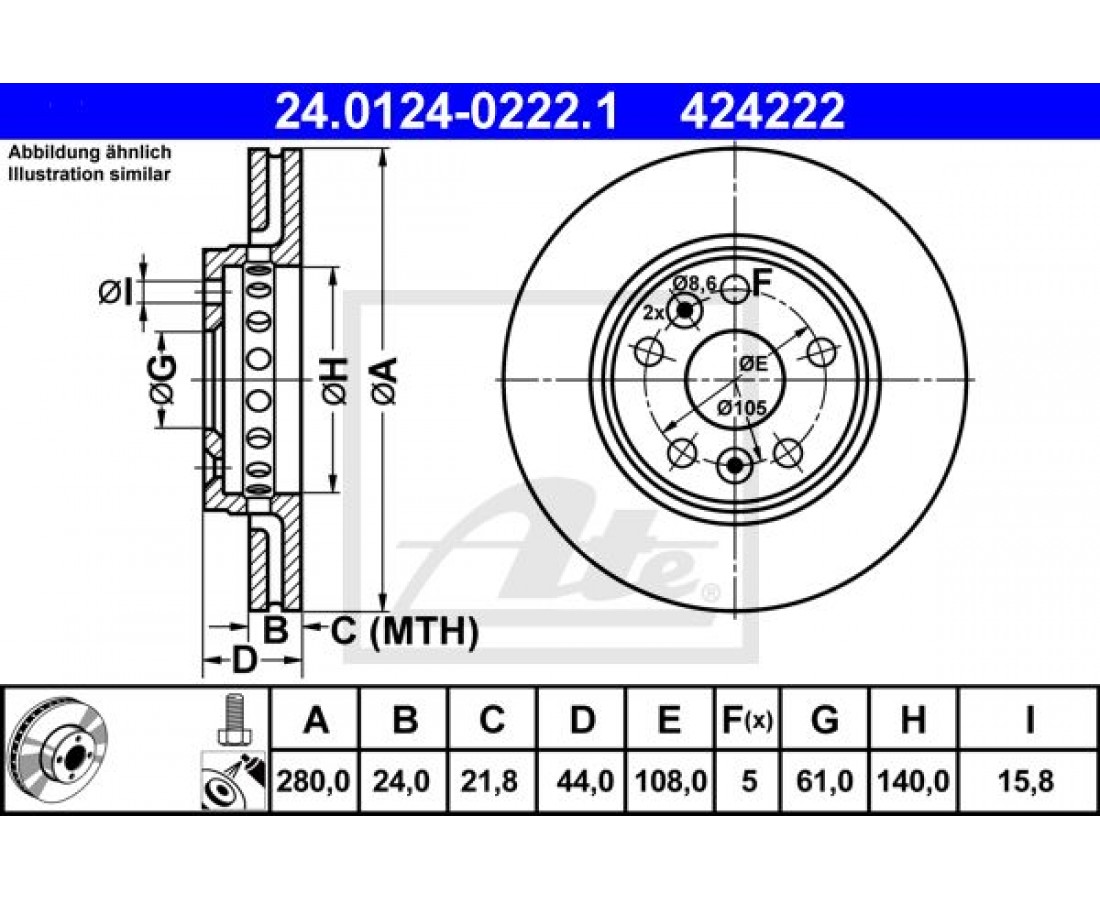 Δισκόπλακες RENAULT KANGOO 2009 - 2013 ( KW ) ATE 24.0124-0222.1