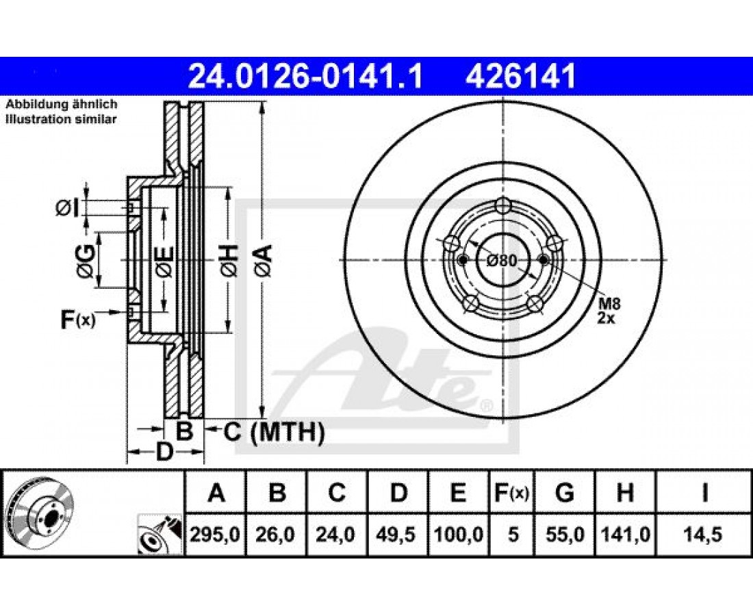 Δισκόπλακες TOYOTA AVENSIS 2003 - 2006 ( T250 ) ATE 24.0126-0141.1