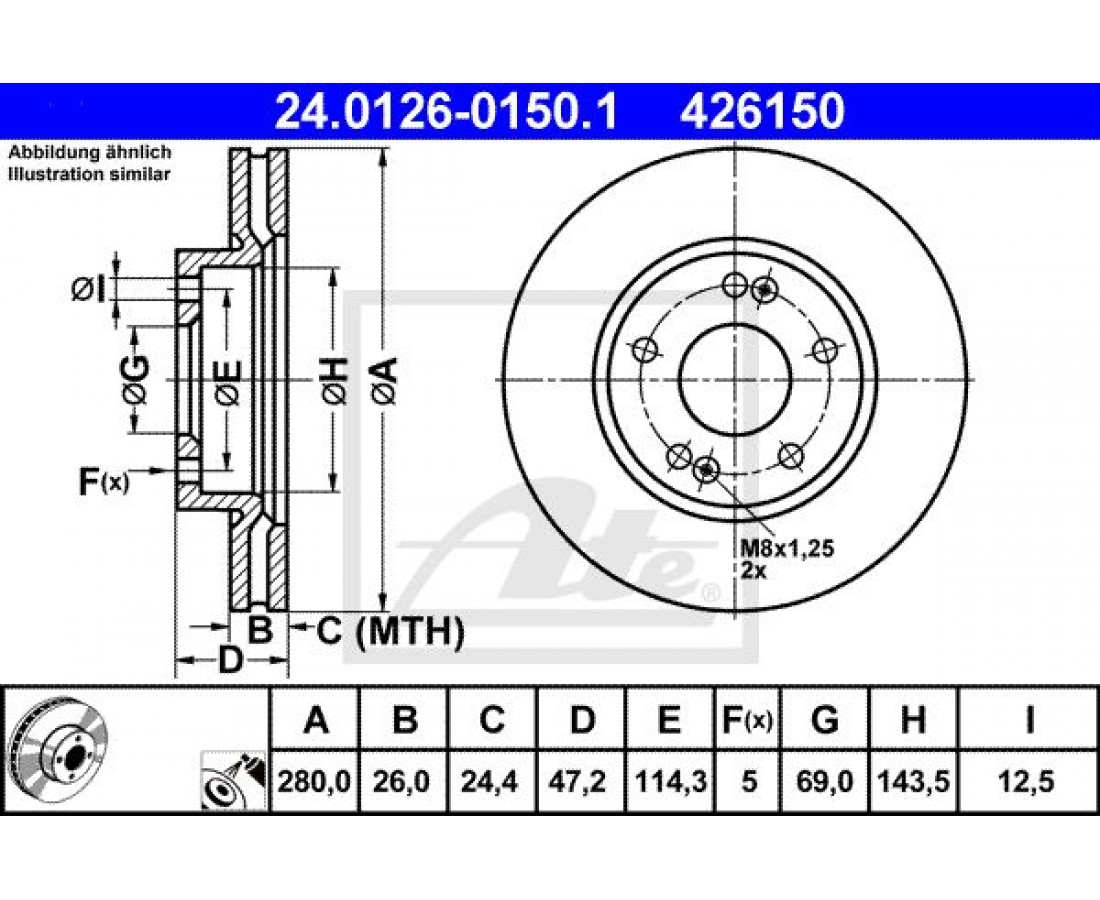 Δισκόπλακες HYUNDAI i30 2007 - 2012 ATE 24.0126-0150.1