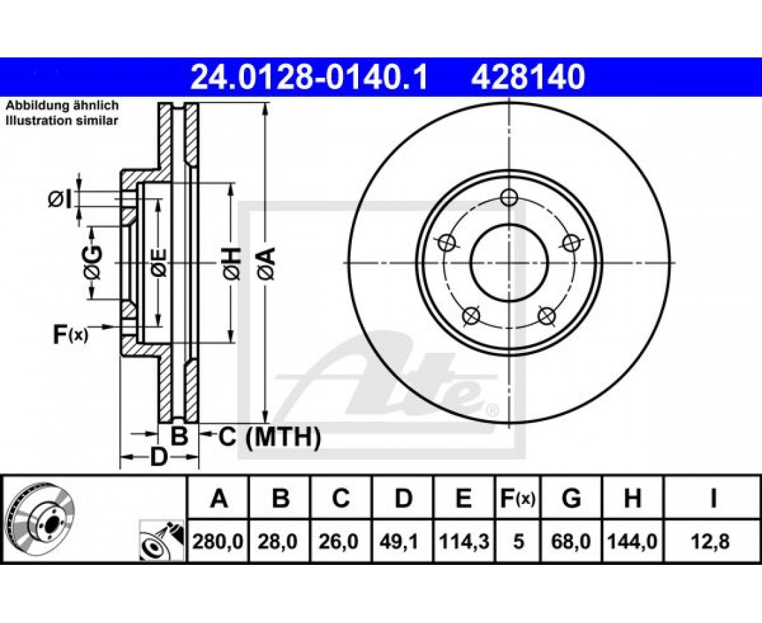 Δισκόπλακες NISSAN PRIMERA 2002 - 2007 ( P12 ) ATE 24.0128-0140.1 της εταιρείας ATEAftermarket ανταλλακτικό πάντα με την εγγύηση της εταιρείας XCAR όπως αυτή περιγράφεται στην αντίστοιχη ενότητα. Η κατάσταση του συγκεκριμένου ανταλλακτικού είναι Καινούριο.
