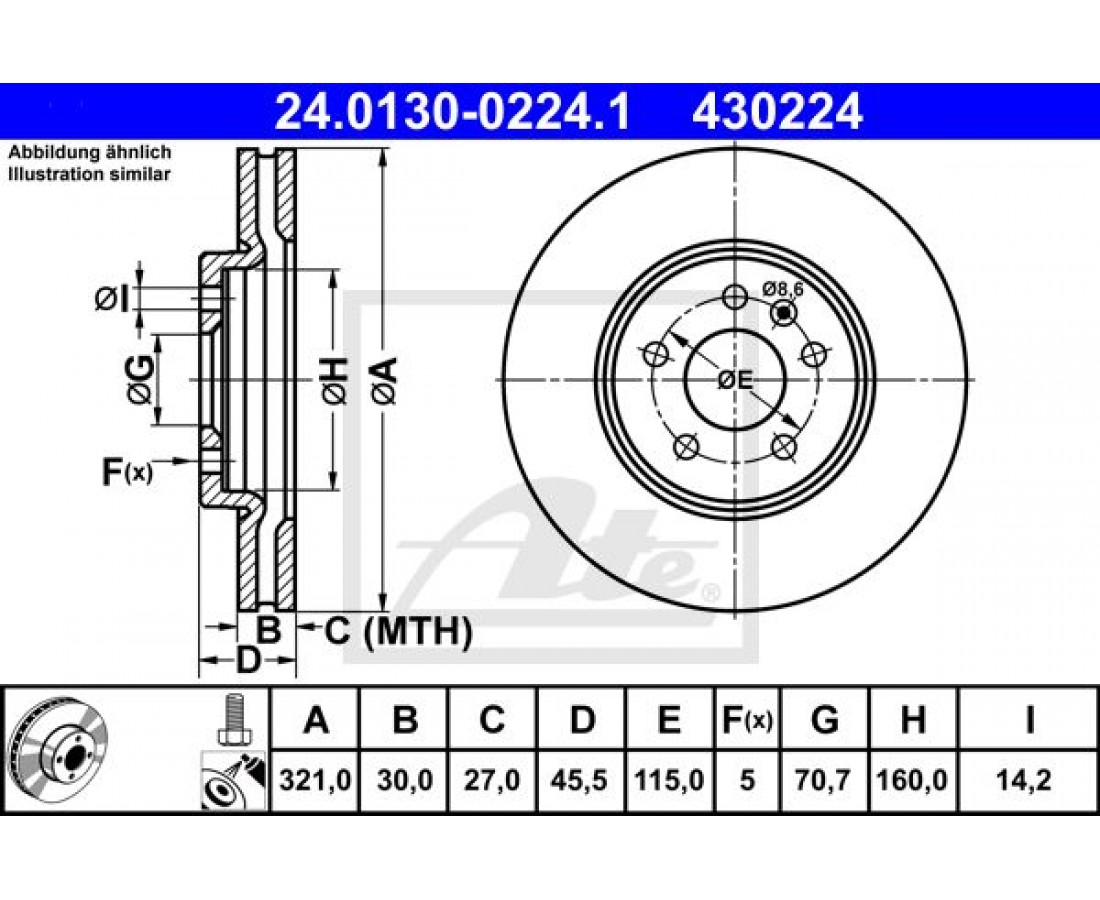 Εγγύηση για το προϊόν Δισκόπλακες OPEL ASTRA 2010 - 2013 ( J ) ATE 24.0130-0224.1