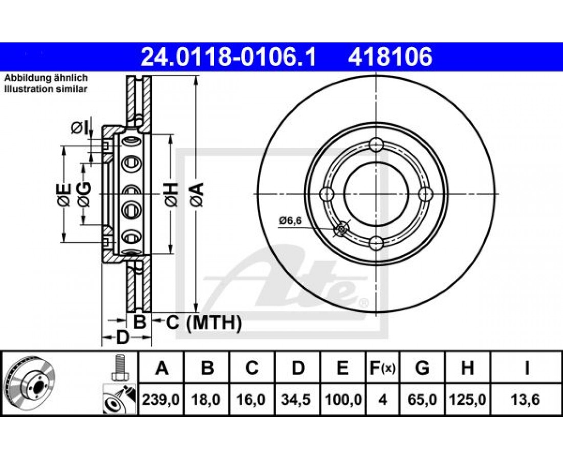 Δισκόπλακες VW LUPO 1998 - 2005 ( 6X1 - 6E1 ) ATE 24.0118-0106.1