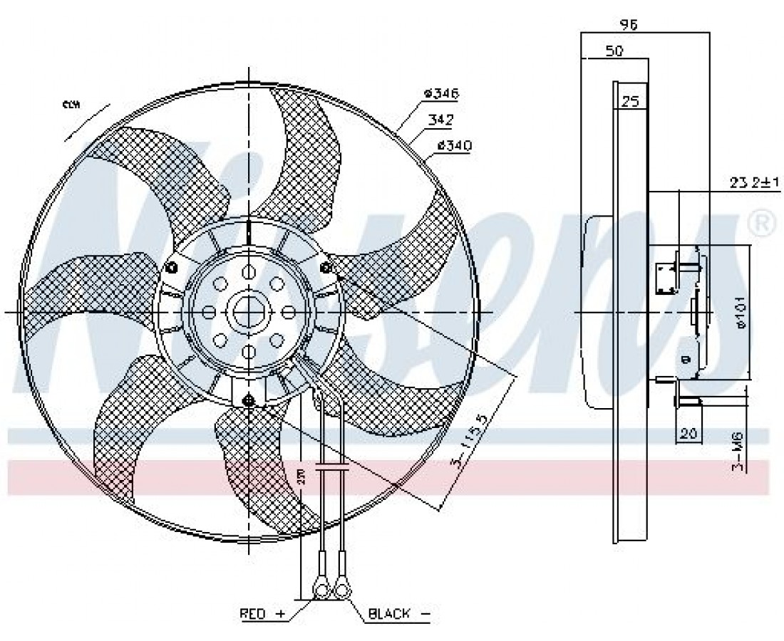 VW TRANSPORTER (T4) 91-96 ΒΕΝΤΙΛΑΤΕΡ A/C (ΜΟΤΕΡ+ΦΤΕΡΩΤΗ) (340MM) (2 ΚΑΛΩΔΙΑ)